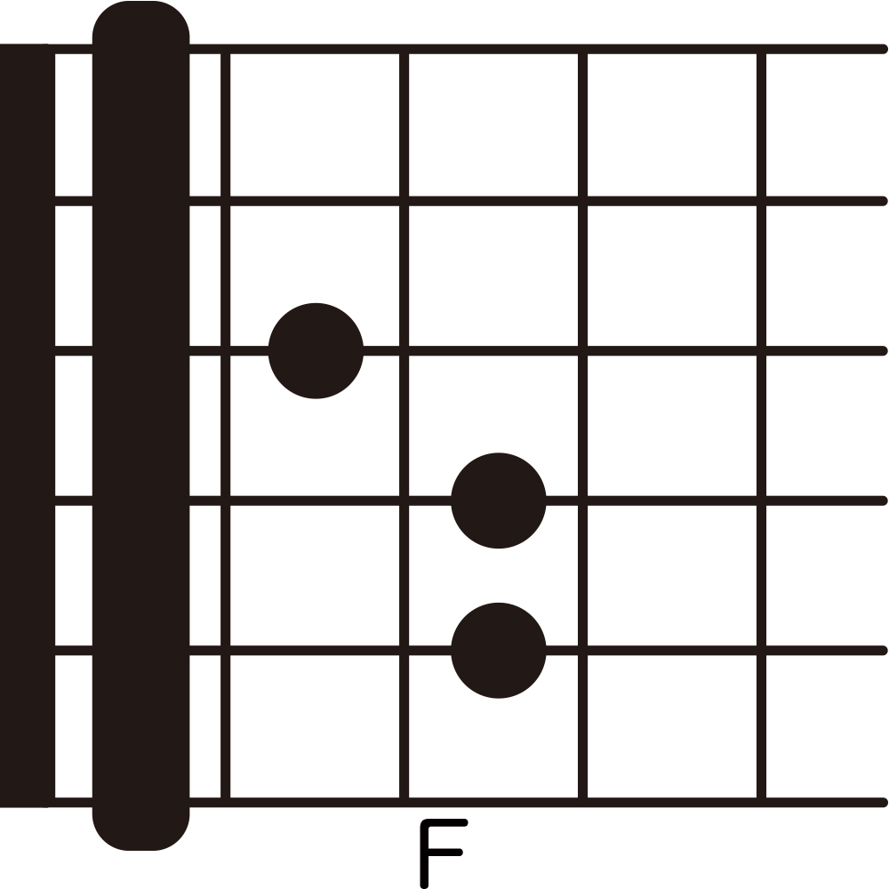 FコードとはFメジャーコードのことを指し、多くの場合、「F」と記載されます。6本の弦すべてを使い、「セーハ」と呼ばれる押さえ方で複数の弦を同時に押さえなければなりません。